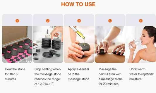 Portable Bianstone Hot Stones Massage Set with Heater Kit - 16 pcs